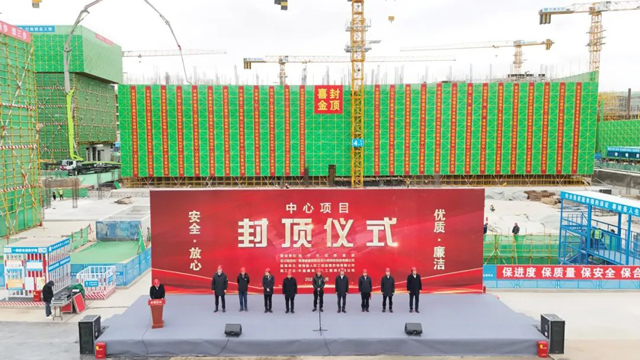 協同精筑中心樓,封頂大吉在晚秋。